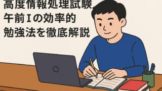 午前Ⅰ試験は応用情報技術者試験問題から30問抜粋して出題されます。対策は別記事でまとめていますのでよかったら確認して見てください。午前Ⅰを突破するだけなら、ひたすら過去問を解く勉強法が効果的です。